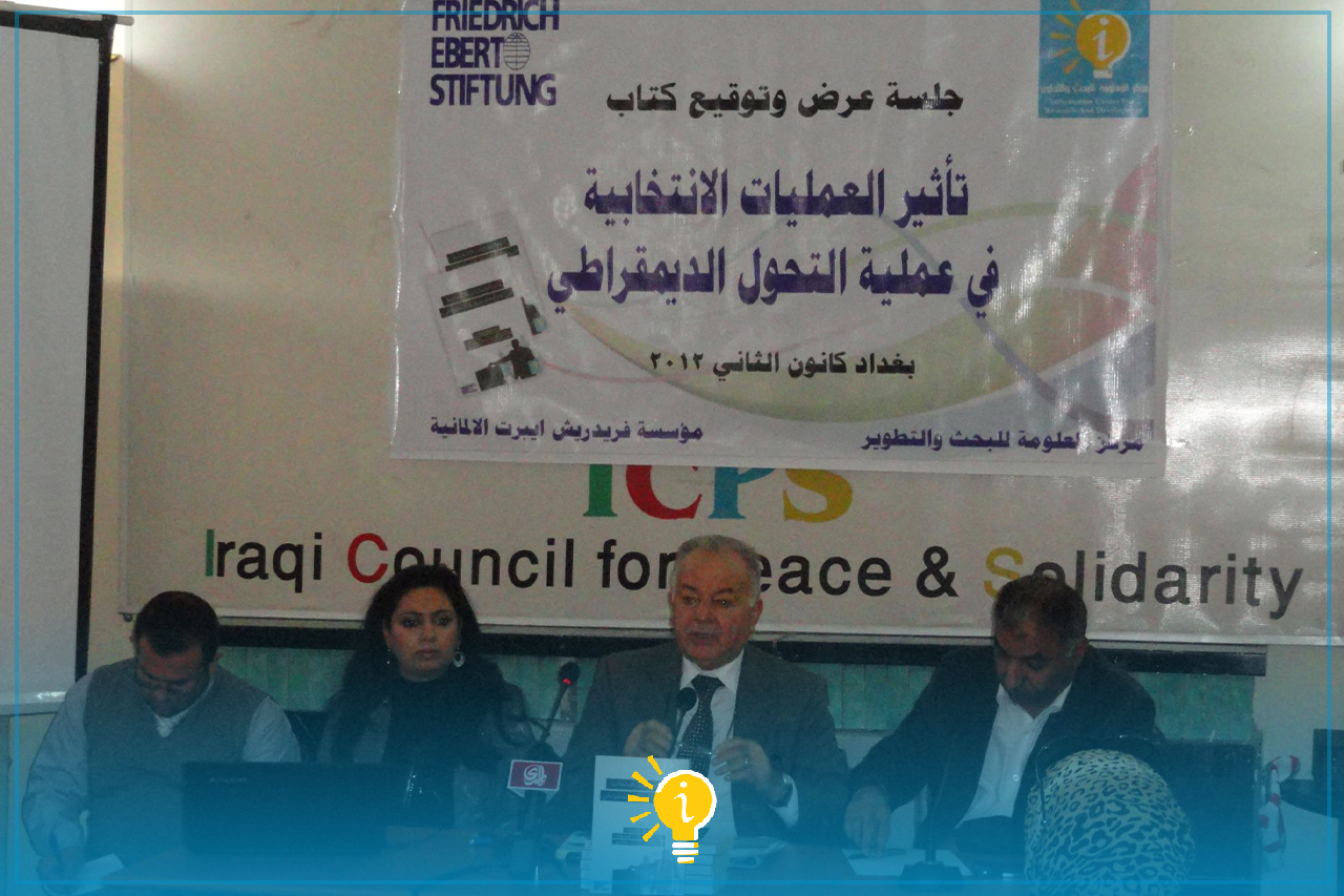 بحضور حشد من اساتذة الجامعيين وناشطين المدنيين والسياسيين والاعلاميين والمهتمين بمجال الانتخابات، عقد مركز المعلومة للبحث والتطوير ندوة لتوقيع كتاب جديد والذي يحمل عنوان "تأثير العمليات الانتخابية في عملية التحول الديمقراطي"، وذلك يوم السبت 26/1/2013 وعلى قاعة المجلس العراقي للسلم والتضامن.