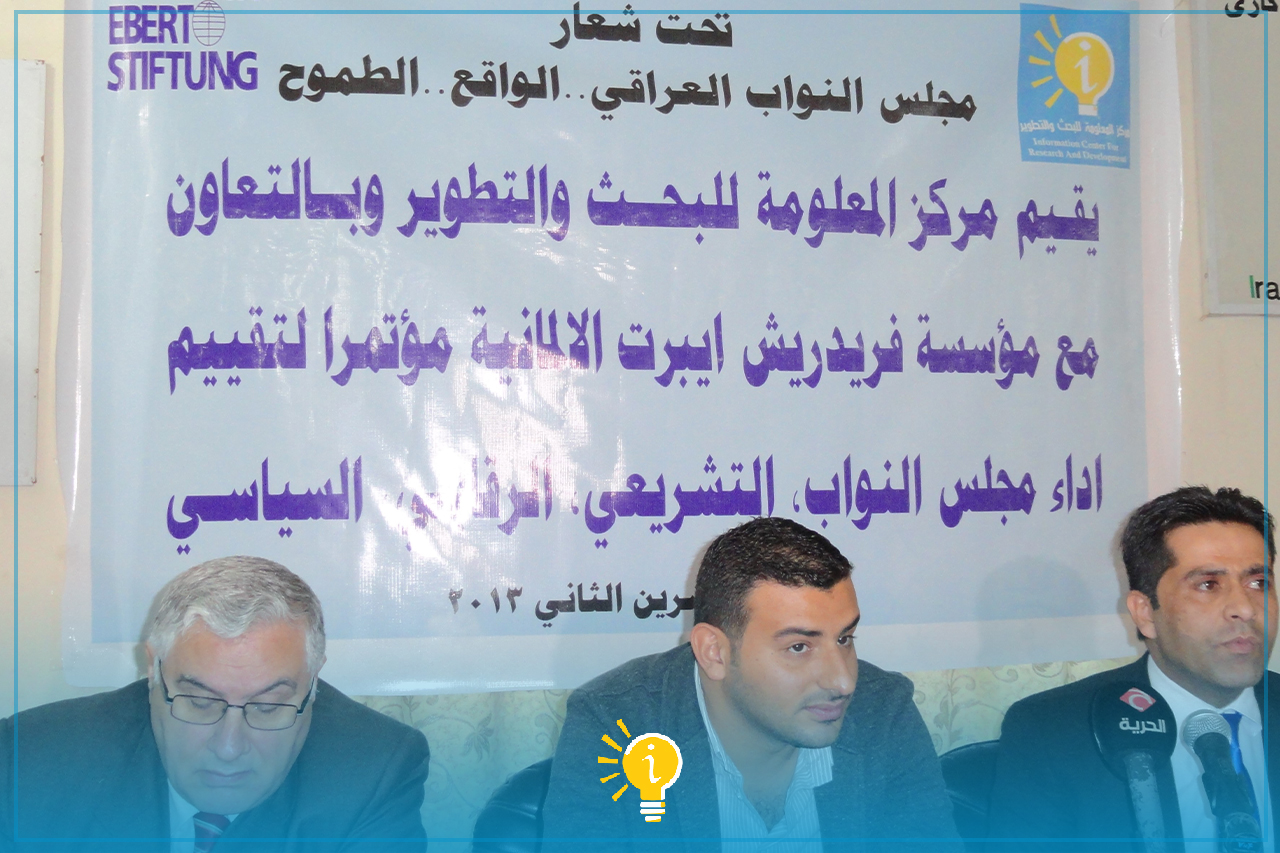 اقام مركز المعلومة للبحث والتطوير وبالتعاون مع مؤسسة فريدريش ايبرت الالمانية مؤتمر لتقييم اداء مجلس النواب العراقي، السياسي، التشريعي، والرقابي، خلال الفترة (2010-2013)، حضره نخبة من الاكاديميين والاستاذة الجامعيين فضلا عن وسائل اعلام ونشطاء سياسيين ومدنيين، وذلك يوم السبت 22/11/2013 في بغداد.