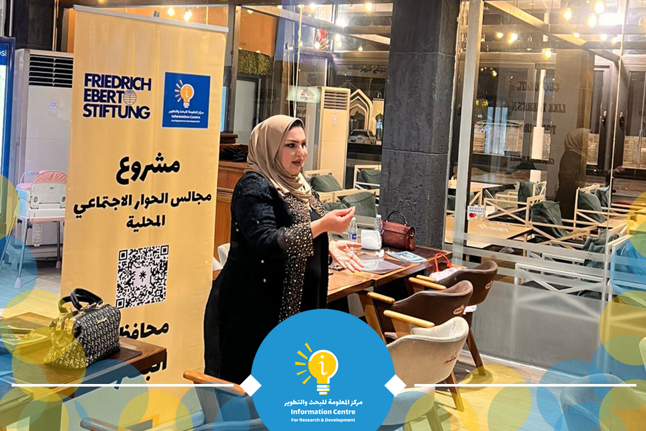 ينفذ هذا النشاط مركز المعلومة للبحث والتطوير ضمن مشروع مجالس الحوار الاجتماعي 2 بالتعاون مع مؤسسة فريدريش إيبرت الالمانية في مدينتي البصرة والموصل.