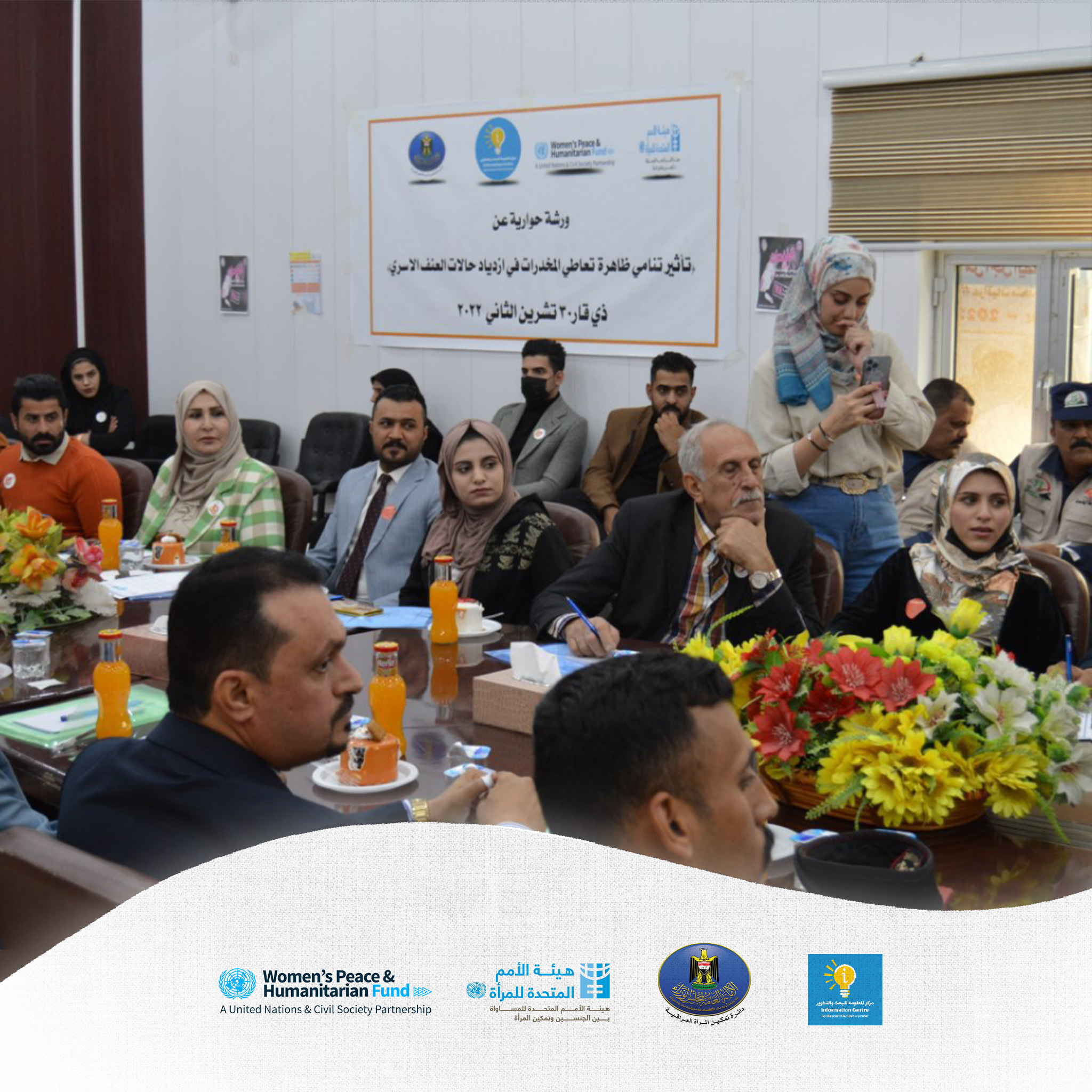 نظم مركز المعلومة للبحث والتطوير وقسم تمكين المرأة في محافظة ذي قار ،ورشة حوارية حول " ظاهرة تعاطي المخدرات في ازدياد حالات العنف الاسري ) ،وذلك يوم الاربعاء الموافق 30 تشرين الثاني 2022 ،على قاعة مديرية الشباب والرياضة ،وبحضور عدد من ممثلي المؤسسات الحكومية وأصحاب القرار وعدد من منظمات المجتمع المدني والناشطات/ين .