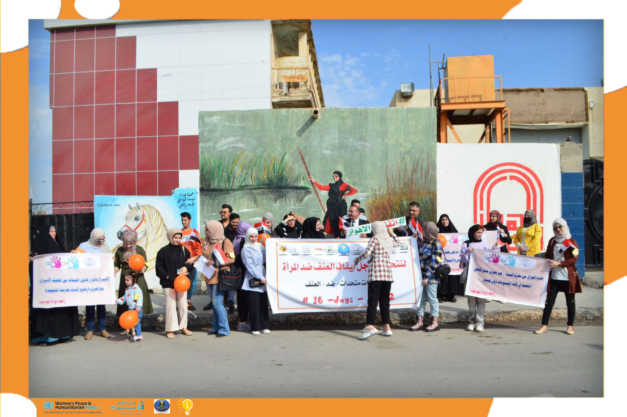 نظم مركز المعلومة للبحث والتطوير في محافظة ذي قار ضمن مشروع " نساء العراق للسلام والحكم الرشيد" الذي ينفذه المركز في محافظات (بغداد،ذي قار ،صلاح الدين ) ، وبدعم من هيئة الأمم المتحدة للمرأة_العراق ، وتمويل من صندوق المرأة للسلام والعمل الإنساني ، وبالتعاون مع دائرة تمكين المرأة في الأمانة العامة لمجلس الوزراء ،وقفة تضامنية بمناسبة حملة الــ16 يوم لمناهضة العنف ضد المرأة ، وذلك يوم السبت الموافق 26 نوفمبر 2022 في شارع الثقافي ، بحضور عدد من منظمات المجتمع المدني والفرق التطوعية والناشطين/ات في المحافظة .