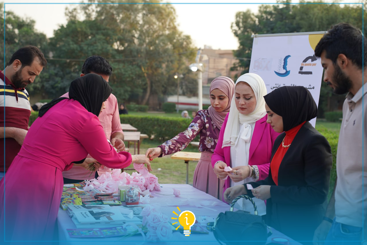 حيث قام فريق مركزنا في الانبار ، بتوزيع كتيب "صوت الثورة"والاشرطة البروشورات الوردية لتشجيع النساء على الفحص المبكر ولتقليل المخاطر والاصابة بسرطان الثدي .